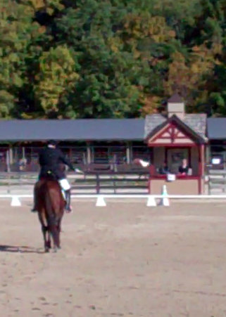 All in all, I wasn’t terribly happy with my ride, because (as is so often the case) we’re doing much better work at home. But there were a couple bright spots. We got a 7 on one sticky transition from trot to medium walk that has been a problem for us all season. That 7 represents a huge improvement. I also got my highest rider score, with a 6.5, up from the 6’s I’ve been getting this year. But the real surprise was the score for our last centerline and halt. We got an 8! My first 8! Yes, I was pretty thrilled by that. We wound up with a 64.5%, which is our best score of the year.