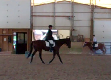 Derbs, it turns out, had other plans. He melted down on me, spooking at everything he saw, whirling and scampering around willy-nilly. I got him past the judge’s stand, with the help of some enthusiastic coaching from judge Caryn Vesperman. We went back and forth in front of the stand, and I thought things were under control as we headed for A. He started the shenanigans again, and after hemming and hawing for a second I withdrew. There were a lot of people and some other horses in close proximity, and I elected to stay safe rather than upset and possibly injure others.