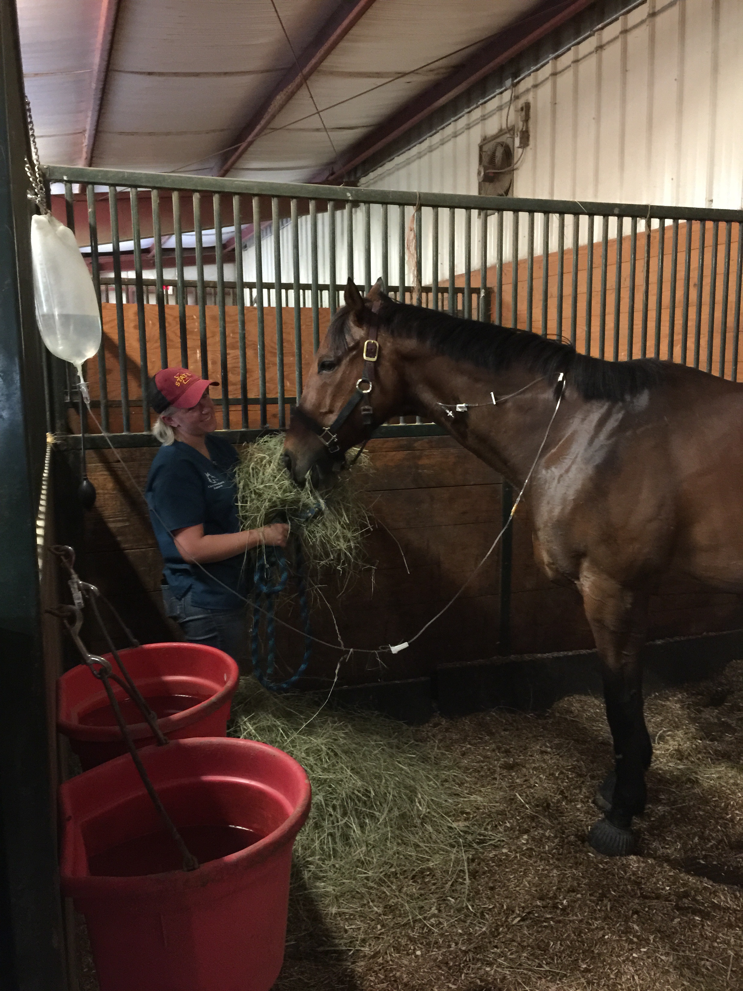 I was up before the crack of dawn the next day, and hot-footed it to the barn with my heart in my throat. When I looked into Derby’s stall and found him quietly snoozing, I was weak with relief. I texted Dr. Nicky with the news. We had made it past an important hurdle.