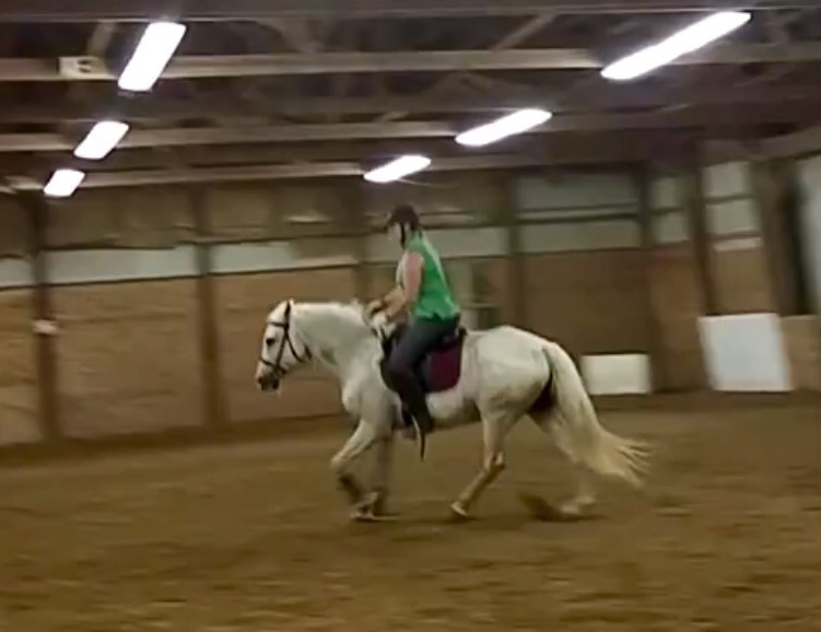As Derby’s ordeal progressed in June, I began looking around for a horse to ride. I needed to keep the rust from forming on the dressage muscles. Good fortune smiled upon me, as a woman Christy had been in contact with was looking for a share boarder for her horse, a handsome Andalusian. Pregnant with her second child, she was still able to ride, but dismounting was becoming a real challenge!