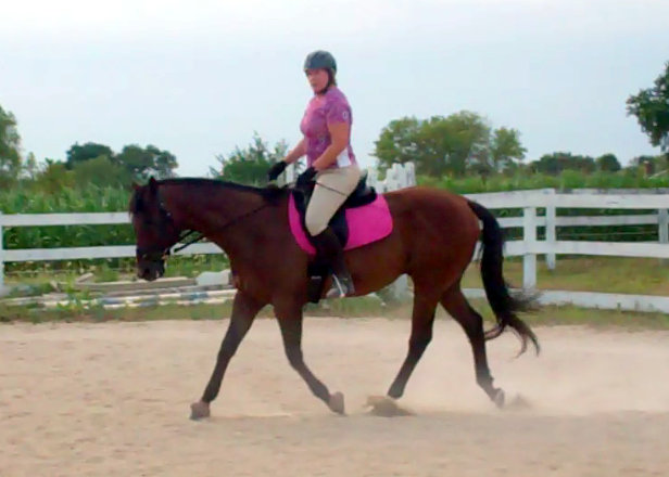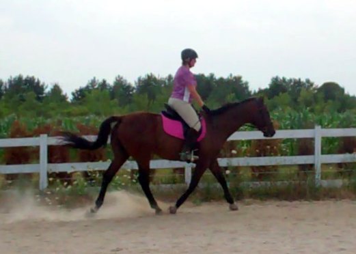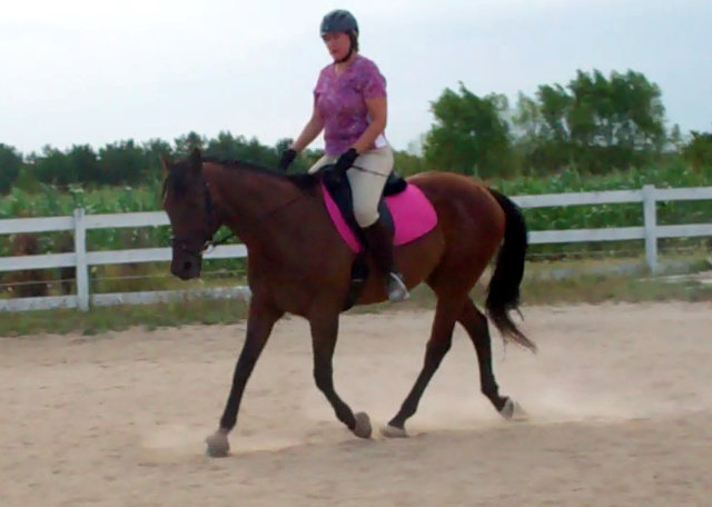 This morning I uploaded all the video I took yesterday, and watched all the rides once again. Then I put on my britches and headed out to the barn, where I rousted Derby from a late-morning nap in the sun. With visions of Bubba’s stretchy trot in my head and Christy’s words from last week’s lessons ringing in my ears (“He needs to be rounder. Rounder still. Half halt. Again. Again. Soften the inside rein. Inside leg on. Half halt. Again!!! MAKE IT HAPPEN!”) I paid attention to differentiating between bracing contact and good, roundness. I half halted, and half halted, and half halted, but I was able to get Derby’s back up, and best of all, I was able to hold it. Getting and maintaining roundness will be the absolute key for us in the coming weeks. Everything is so much easier when you’re operating from that essential “ready” position, with a forward, round, connected horse.