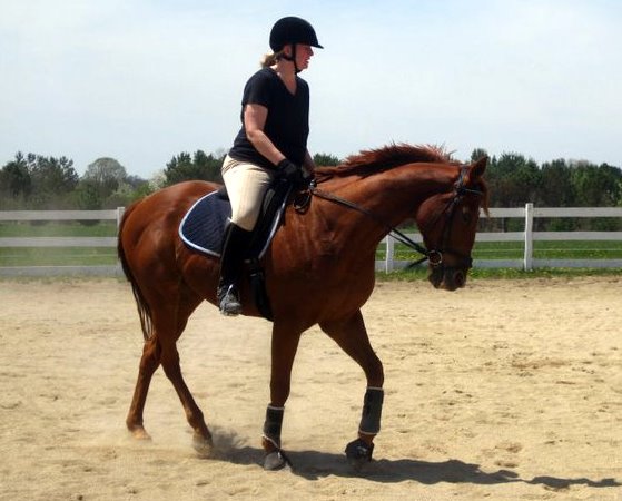 Once we got back home, I saddled up and rode my clean, shiny horse in my clean, shiny tack, in my white britches and sparkling boots. We had some really nice work, though Derby was pretty tired after his excursion and various inappropriate expenditures of energy. He started to fuss and I put my leg on and gave him a swat with my new (longer) whip. He came to, and we ended on a really good note, with some lovely trot work into a very good, on-the-bit halt.