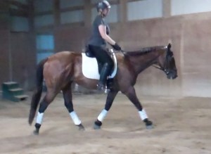 The quality of his gaits improved across the board. We have a legtimate, swingy medium walk, a very nice free walk stretching into contact, and a rhythmic canter. When he’s behind my leg, his canter gets lateral. It’s awful. Tonight, it was pretty nice.