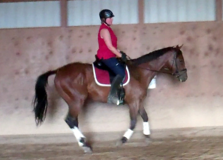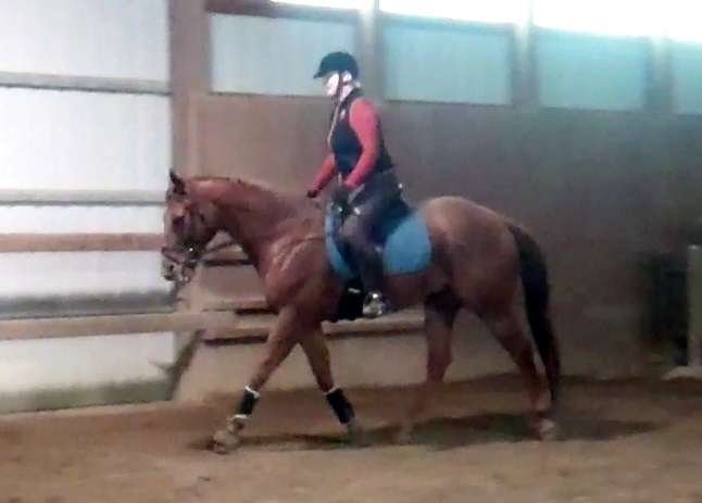 Here’s a clip of our canter work. I was thinking about last night’s ride again this morning, and forgot to add one more observation – that a more forward horse is in steadier contact. Anyway, in this clip I’m starting to influence the canter here and there, getting him to lengthen stride and round (albeit sporadically, but it’s a start!)