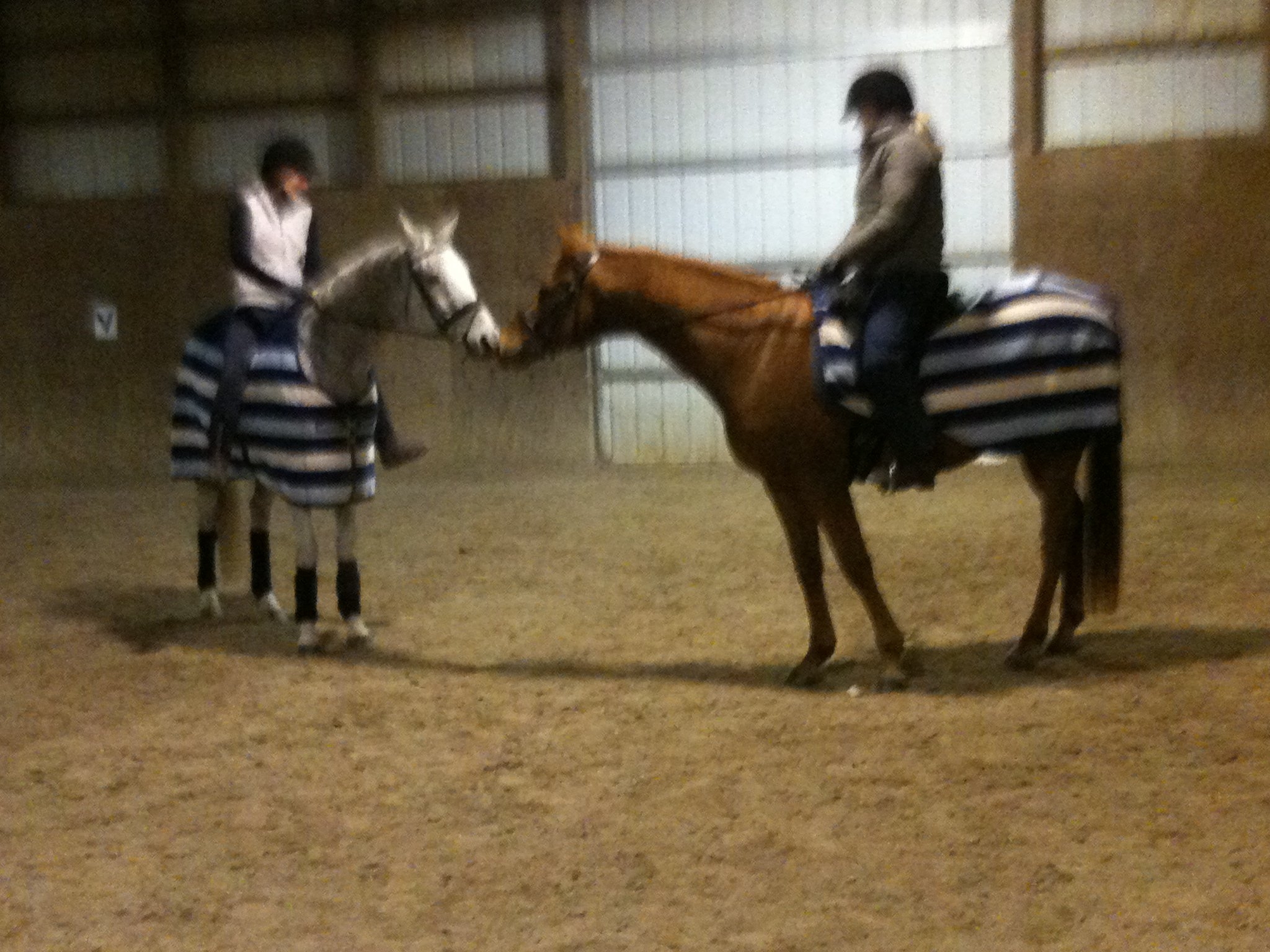 This morning I uploaded all the video I took yesterday, and watched all the rides once again. Then I put on my britches and headed out to the barn, where I rousted Derby from a late-morning nap in the sun. With visions of Bubba’s stretchy trot in my head and Christy’s words from last week’s lessons ringing in my ears (“He needs to be rounder. Rounder still. Half halt. Again. Again. Soften the inside rein. Inside leg on. Half halt. Again!!! MAKE IT HAPPEN!”) I paid attention to differentiating between bracing contact and good, roundness. I half halted, and half halted, and half halted, but I was able to get Derby’s back up, and best of all, I was able to hold it. Getting and maintaining roundness will be the absolute key for us in the coming weeks. Everything is so much easier when you’re operating from that essential “ready” position, with a forward, round, connected horse.